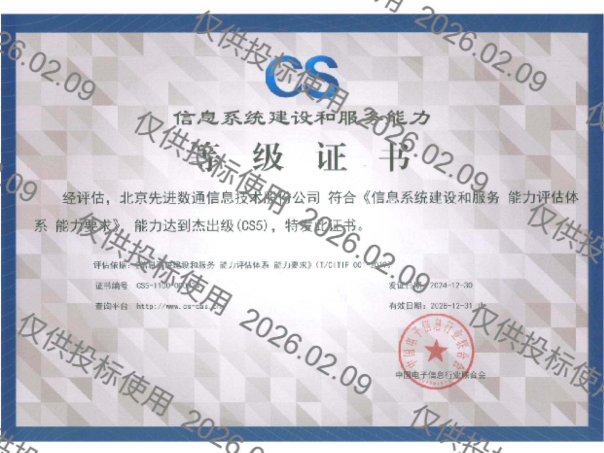 PA视讯PlayAce先后取得CMMIL5、软件能力成熟度五级(SPCA 5)、信息系统建设和服务能力评估体系(CS)5级、ITSS成熟度一级、信息系统安全集成服务资质二级、信息系统安全运维服务资质二级、国产化信息系统集成和服务能力评估四级(LS4)、北京市企业技术中心等资质认证,并取得ISO9001、ISO20000、ISO27001、ISO14001、ISO45001、ISO22301、ISO37001、ISO28001、GBT29490等标准体系认证,具备行业领先的技术开发、工程实施及服务保障能力。